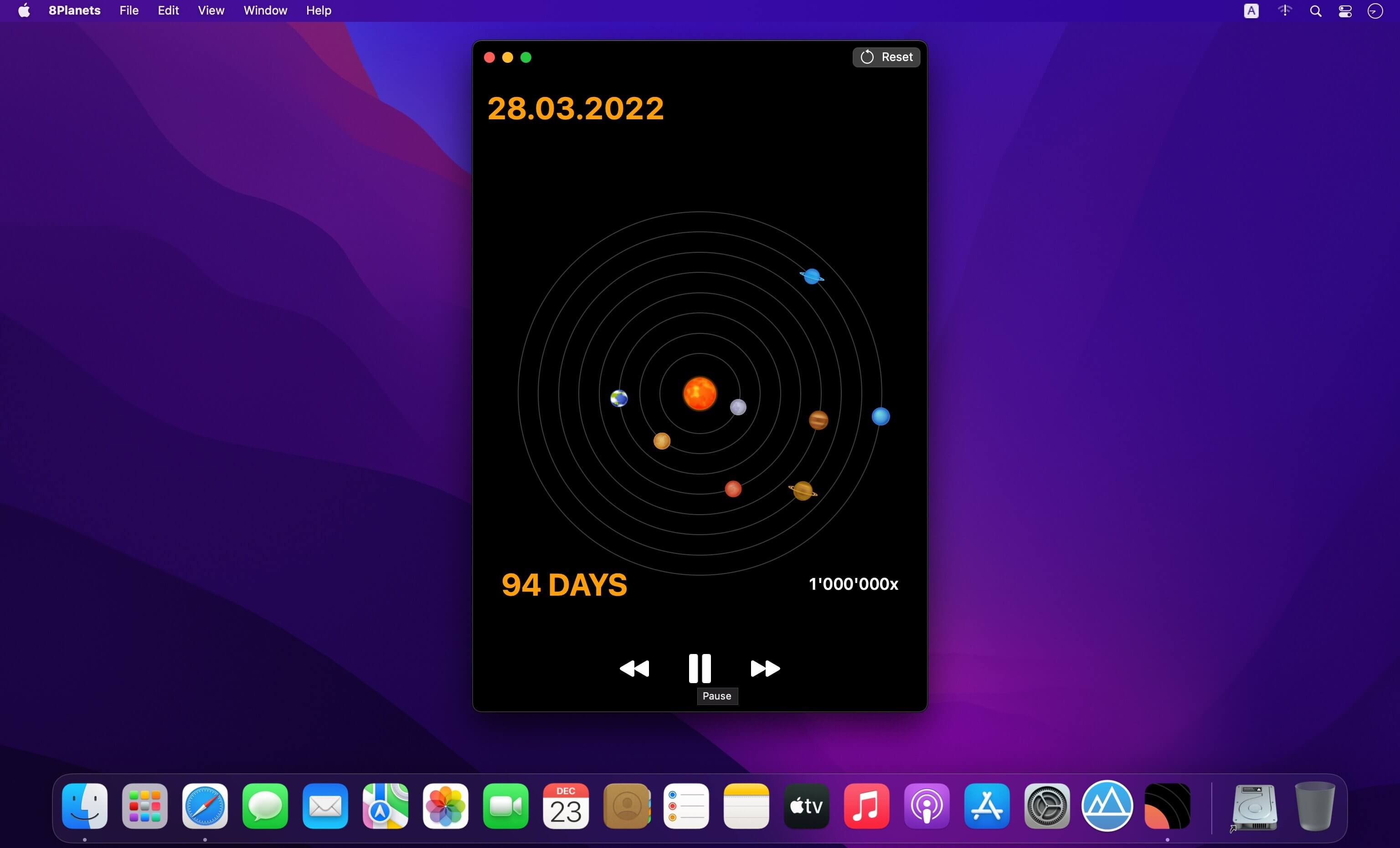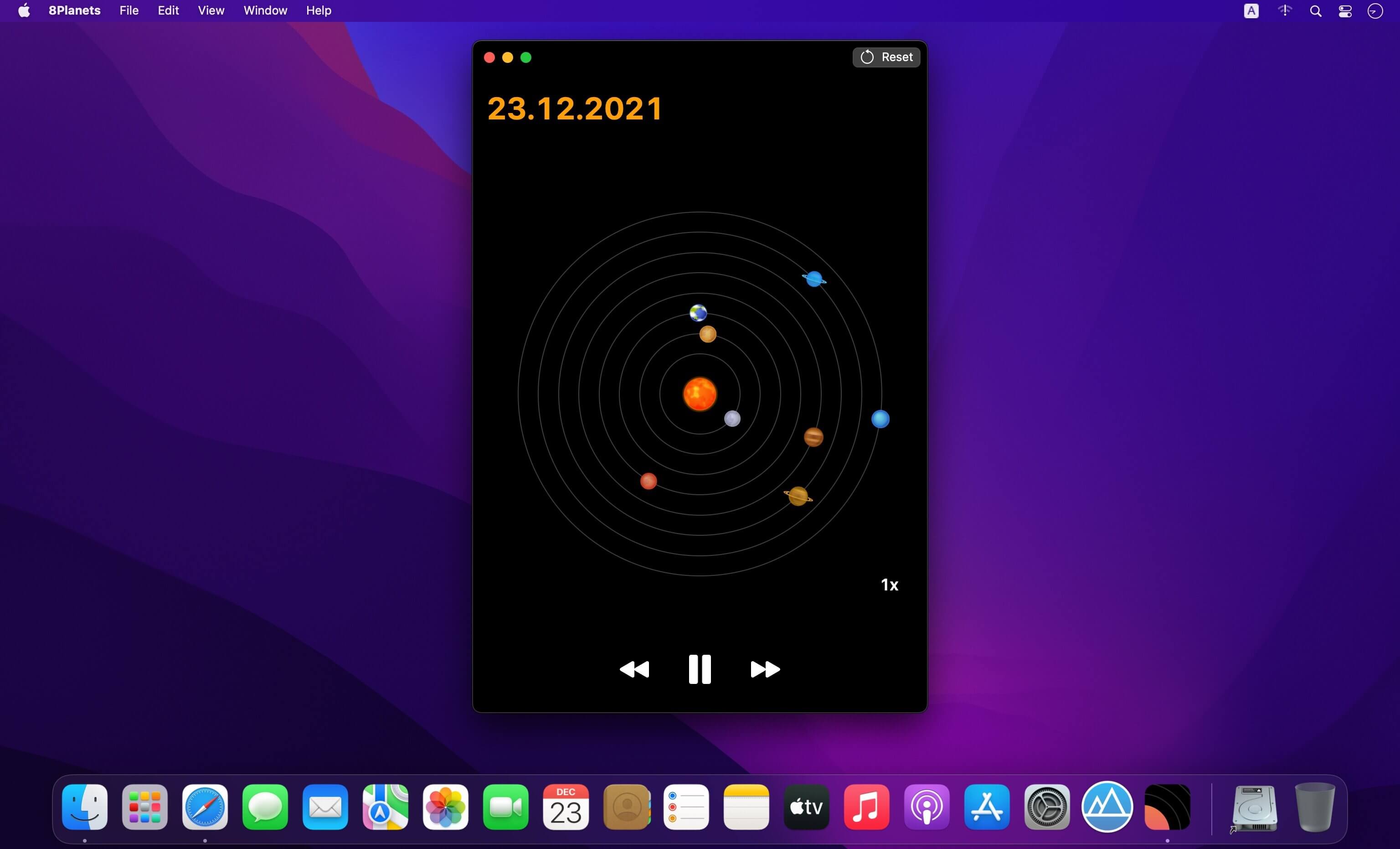 8Planets – Solar System Viewer 1.1.7 Год выпуска: 2022 Версия: 1.1.7 Платформа: PC Системные требования: macOS 11.0 or later Язык интерфейса: английский Таблэтка: Программа пролечена (не требует введения данных/вводим любые данные) Описание: 8Planets — это простой просмотрщик и симулятор планетарных орбит в нашей Солнечной системе. 8Planets поможет вам узнать, как планеты выравниваются и перемещаются с течением времени, чтобы вы почувствовали масштаб Солнечной системы или даже Вселенной. Предоставляя вам быстрый и легкий доступ к Солнечной системе повсюду, 8Planets заставит вас почувствовать, что Солнечная система близка к нам. ФУНКЦИИ: ・Движение планет Ускорьте или замедлите время, чтобы увидеть, как планеты вращаются во времени, и понять масштабы Солнечной системы. ・Путешествие во времени Путешествуйте назад или вперед во времени, чтобы увидеть Солнечную систему или положение планет в любую дату. ・Виджеты