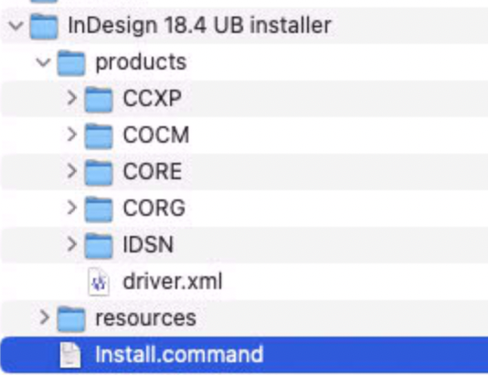 3) скопировать папку « продукты » в папку скрипта установщика вместо одноименной папки-заполнителя это пример того, как выглядит внутренность установщика adobe это пример как должен выглядеть ваш новый установщик (в примере это InDesign)