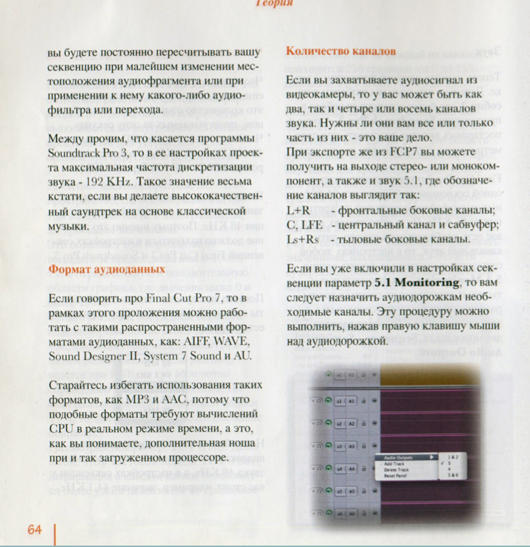Андрей Федоров - Экспресс-энциклопедия Final Cut Studio 3. Пособие первое Год выпуска: 2009 Автор: Андрей Федоров Жанр: Учебное пособие Издательство: ООО "Стрит принт" ISBN: 978-5-478-01283-0 Формат: PDF Качество: Отсканированные страницы Количество страниц: 300 Описание: Пособие раскрывает основные приемы работы с такими программами как: Final Cut Pro 7, Color 1.5, DVD Studio Pro 4.2.2, Compressor 3.5 и LiveType 2.1. Основная идея книги - это лаконичное представление информации, которая необходима для эффективной работы в приложениях пакета Final Cut Studio 3. Помимо вышеперечисленного вам будет предложен для прочтения обширный теоретический материал по киномонтажу, цветокоррекции и технологическим процессам. Скриншоты:-
