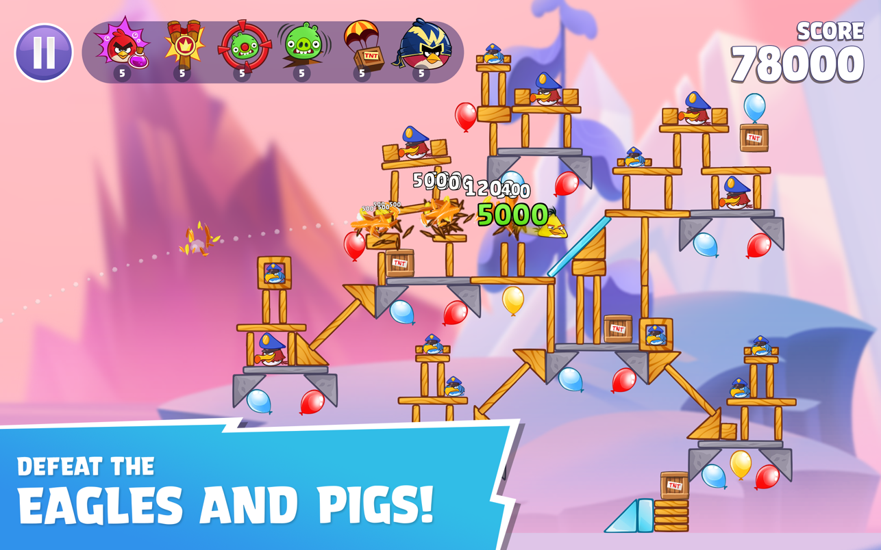 Усиления сделают птиц еще более разрушительными! Целься дальше, лети выше и обрушивай башни свиней!