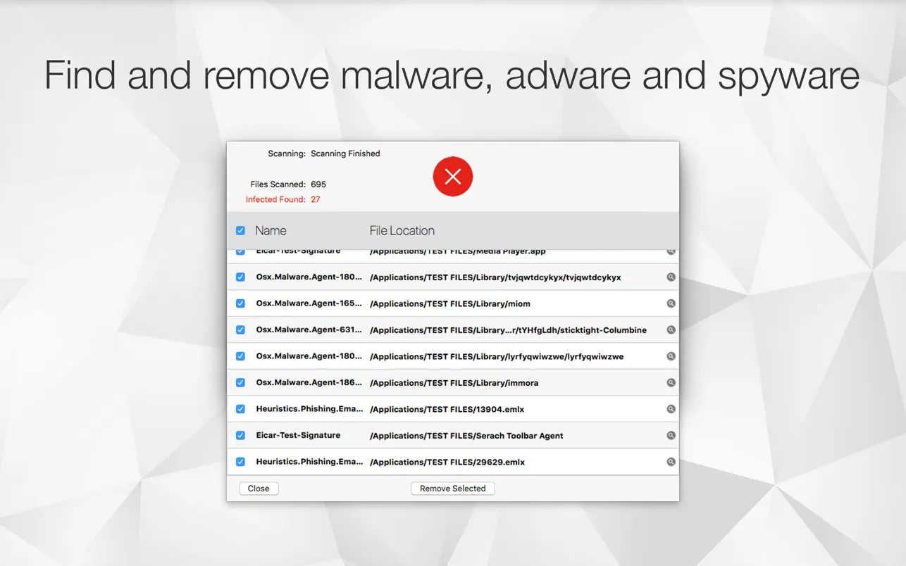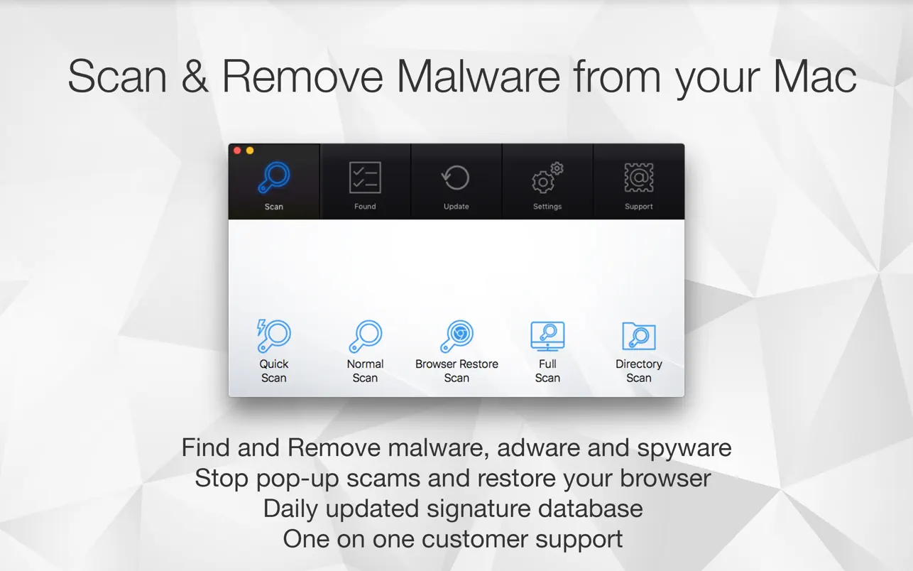 Обнаруживает угрозы не только для macOS, но и для Windows и Linux. Можно сканировать на наличие вредоносных программ загрузочную рамку Windows, внешние и сетевые диски.