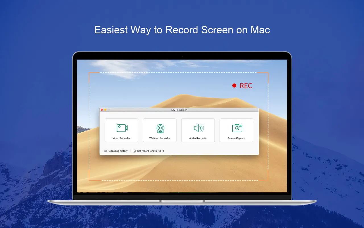 Any RecScreen предоставляет все необходимое для записи экрана Mac. Для создания высококачественных скринкастов достаточно выполнить следующие четыре простых шага: