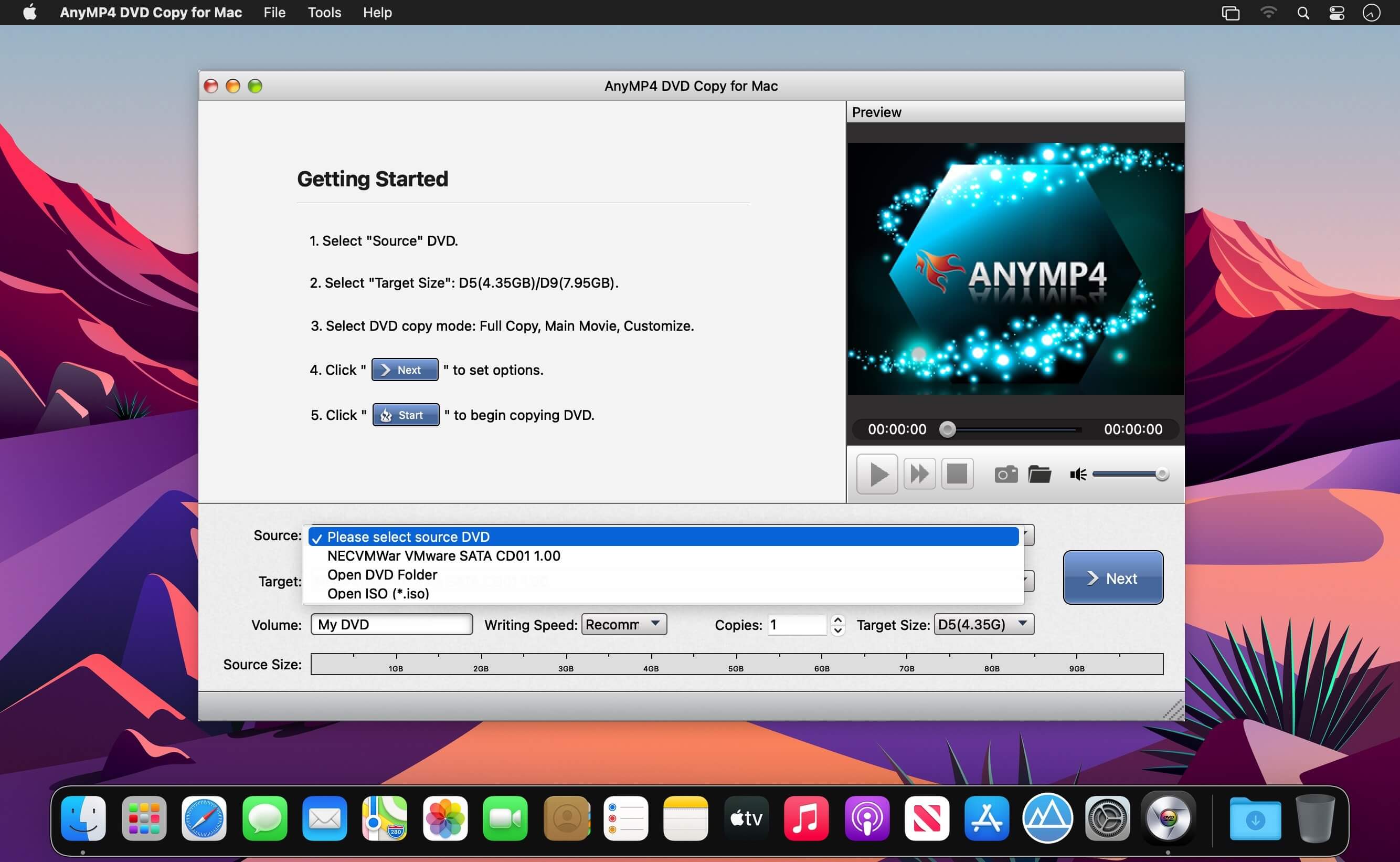 AnyMP4 DVD Copy для Mac - это профессиональное, но простое в использовании программное обеспечение как для новичков, так и для опытных пользователей. Это приложение для копирования DVD, оснащенное передовой технологией, позволяет копировать DVD-фильмы с максимальной скоростью копирования и наилучшим качеством вывода. Этот Mac DVD Copier поддерживает все DVD-диски, такие, как DVD + -R / RW, DVD-RAM, большинство DVD-плееров и записывающих устройств, а также двухслойные диски объемом 8,5 ГБ, поэтому вы можете удобно воспроизводить их на большинстве плееров Скриншоты:-