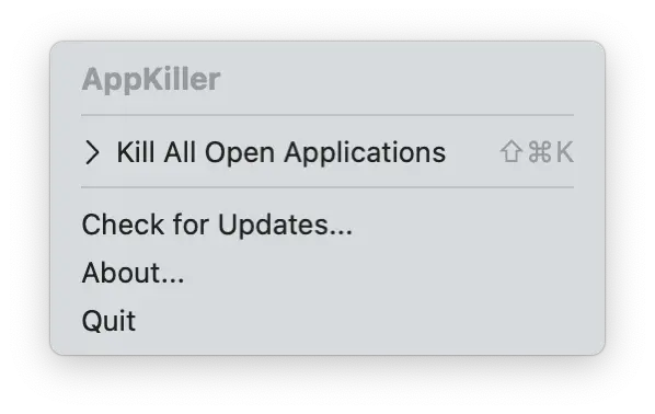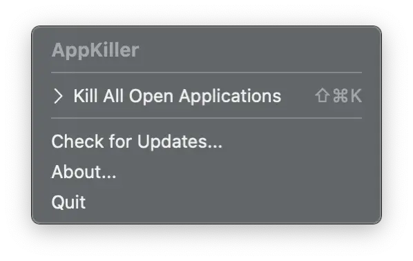 Cmd+Shift+K: И это все, что требуется для мгновенного уничтожения всех открытых приложений - действительно! Скриншоты:-