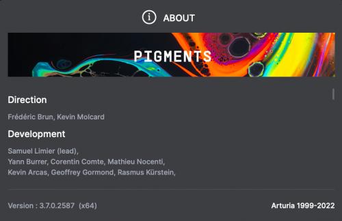 Arturia - Pigments 3.7.0.2587 STANDALONE, VST, VST3, AAX, AUi x64 (macOS) Год выпуска: 05.2022 Версия: 3.7.0.2587 Разработчик: Arturia Платформа: Intel/Rosetta Язык интерфейса: английский Таблетка: Патчер с инструкцией в комплекте Системные требования: Mac OS 10.13 High Sierra or higher: 4 GB RAM; 2.5 GHz CPU.