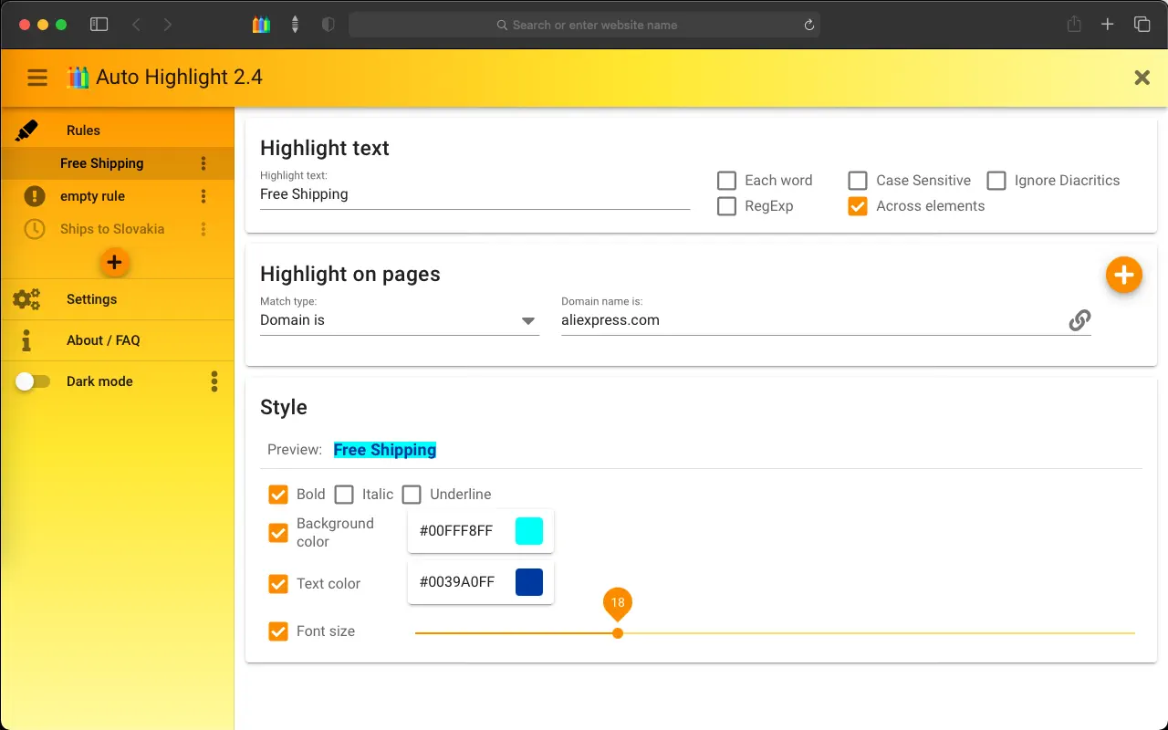 Описание: Auto Highlight — это расширение для Safari, которое автоматически выделяет определенные слова на определенных страницах. Помогает увидеть важные детали. Иногда страница просто плохо спроектирована и информация, которую вы ищете, недостаточно видна. Распространенные случаи использования: