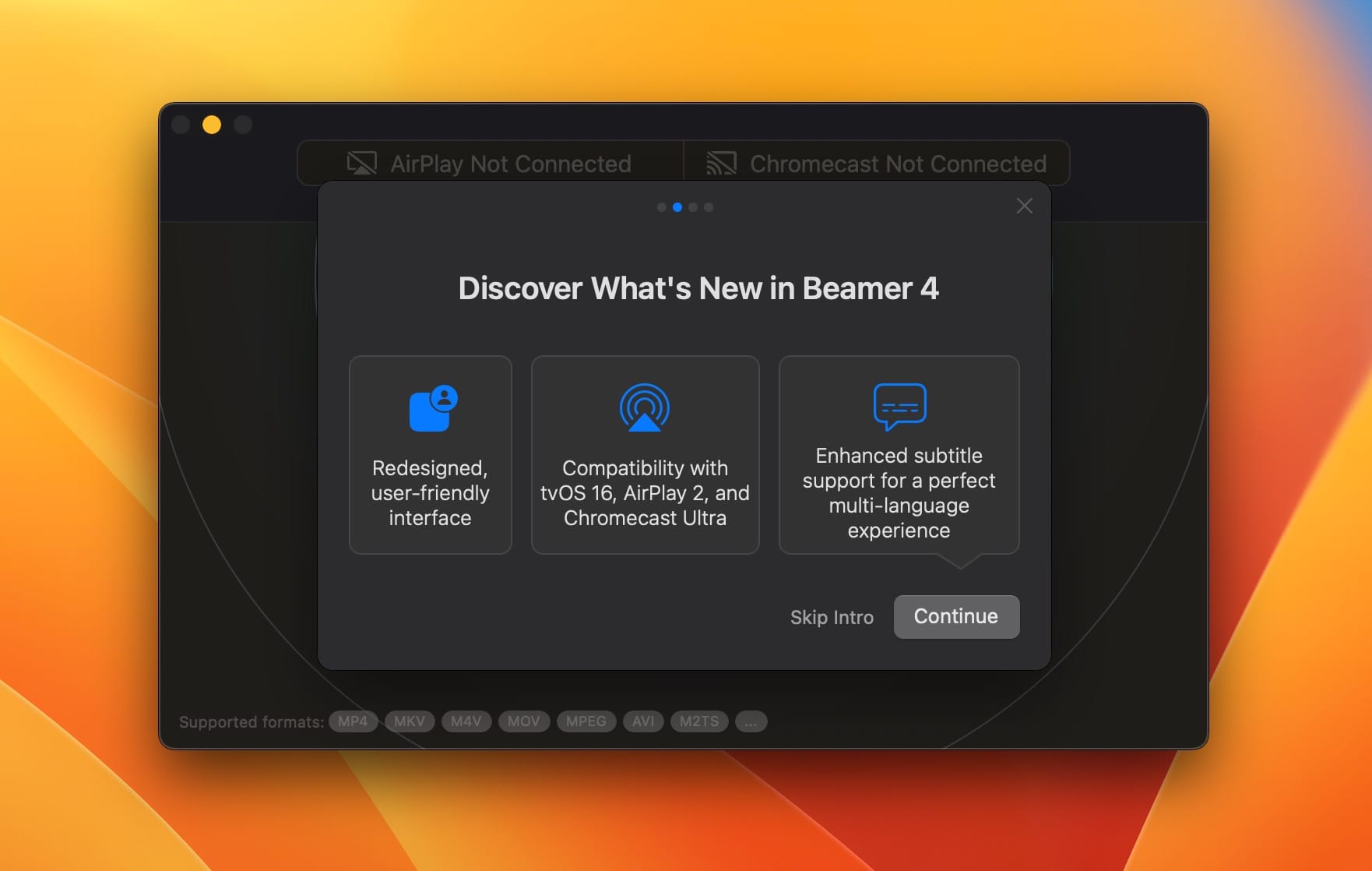 Описание: Транслируйте видео с вашего Mac без усилий Транслируйте ваши любимые видео с вашего Mac напрямую на Apple TV, Chromecast и другие устройства с помощью Beamer 4 . Перетащите свои видеофайлы на Beamer 4 и сразу начните просмотр на телевизоре. Beamer выполняет все преобразования и потоковую передачу для вас, так что вы можете расслабиться и наслаждаться. Модернизированный интерфейс