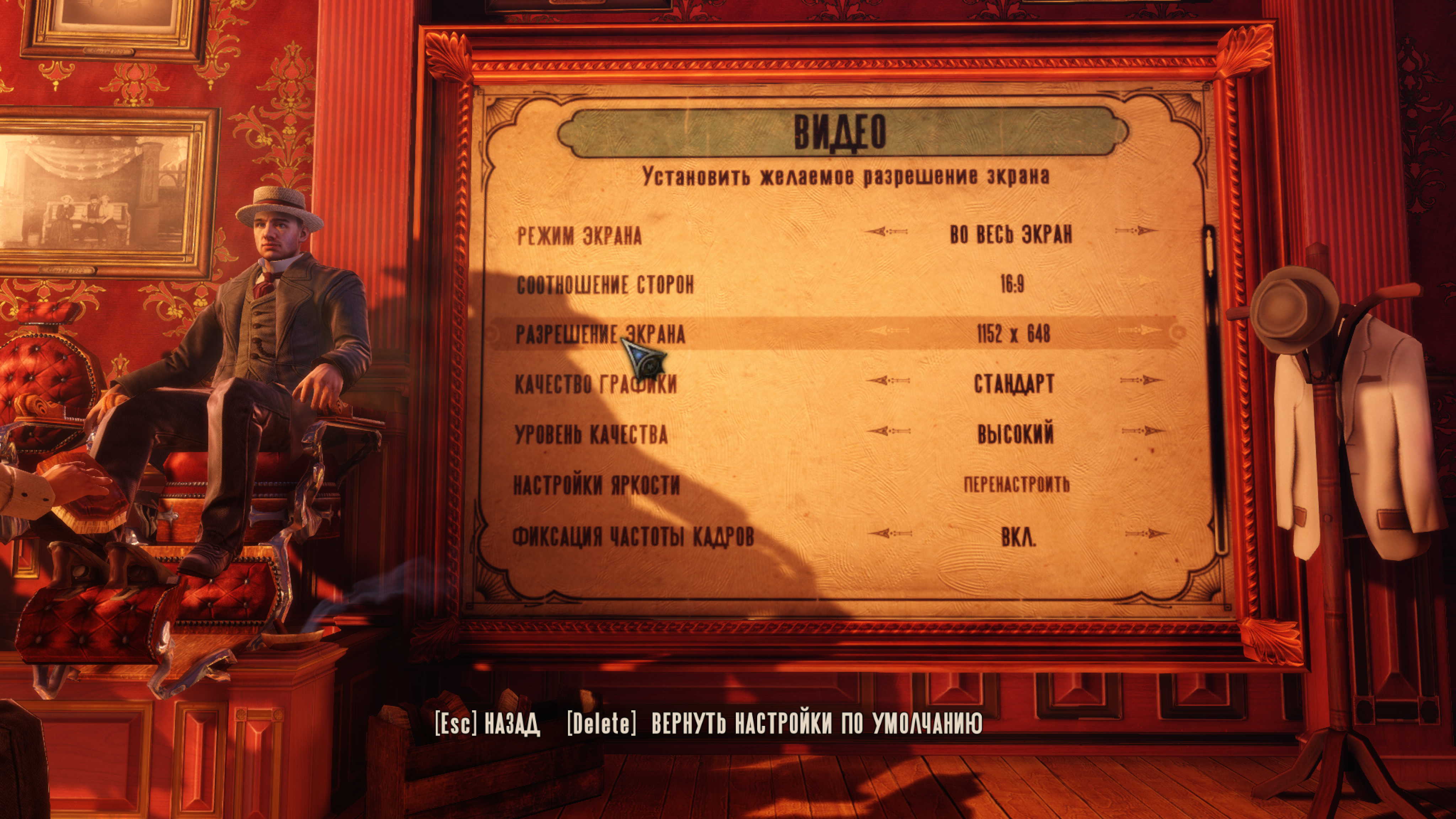 Разрешений широкоформатного экрана в игре только 2 - 1152:648 и 1280:720, поэтому идём по пути /username/Library/Application Support/Bioshock Infinite/XGame/Config и открываем текстовым редактором файл XUserOptions.ini (только после первого запуска игры), далее в самом низу редактируем строки ResolutionX и ResolutionY согласно разрешению вашего монитора (на моём 4к ретина максимум встало 2048:1152)