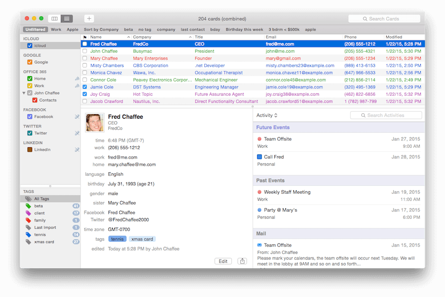 BusyContacts является менеджером контактов для OS X, что позволяет создавать, находить и управлять контактами более быстрым и эффективным способом.