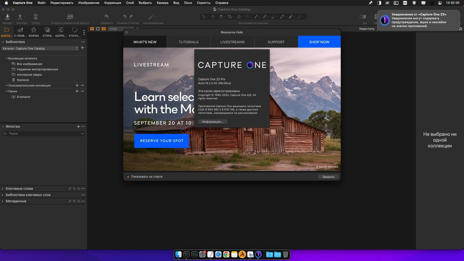 Capture One 23 Pro Год выпуска: 2023 Версия: 16.2.4.34 Разработчик: Phase One Платформа: Intel/Apple Silicon Universal Язык интерфейса: русский, английский Таблэтка: Программа пролечена (не требует введения данных/вводим любые данные) Системные требования: