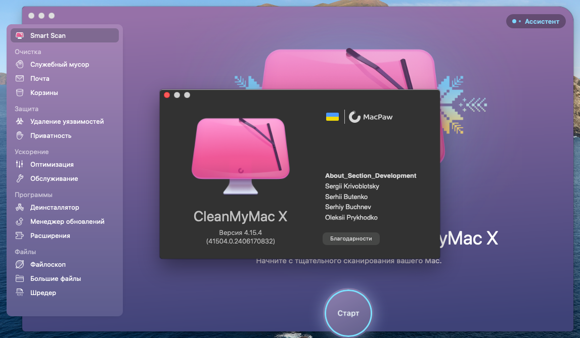 CleanMyMac X 4.15.4-Год выпуска: 2024 Версия: 4.15.4 Разработчик: MacPaw Inc. Платформа: Intel/Apple Silicon Universal Язык интерфейса: русский, английский Таблэтка: Программа пролечена (не требует введения данных/вводим любые данные) Системные требования: