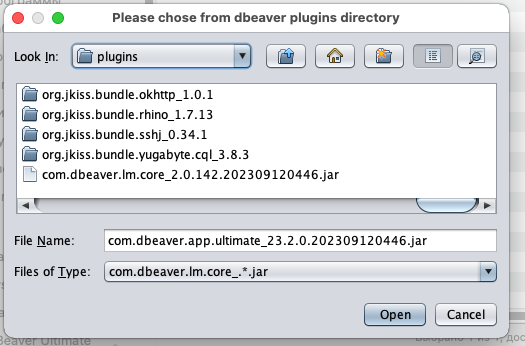 /Applications/DBeaverUltimate.app/Contents/Eclipse/plugins эта папка в содержимом приложения