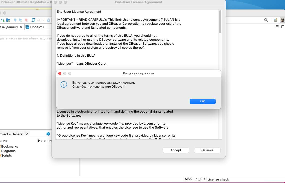 4) Установите патч "com.dbeaver.lm.core_.jar", найденный в "/Applications/DBeaverUltimate.app/Contents/Eclipse/plugins". Запустите патч дважды: один раз для исправления онлайн-проверки и один раз для исправления открытого ключа.