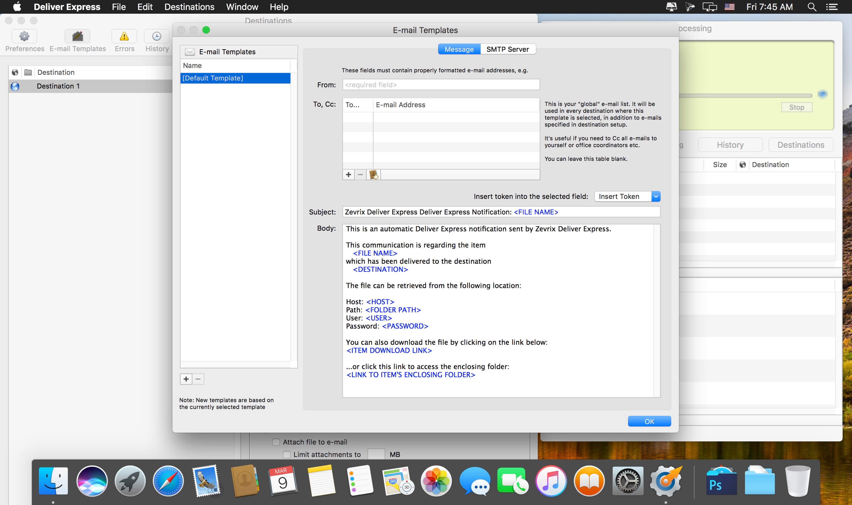 Описание: Deliver Express - это автоматизированное решение для удобной отправки и обмена файлами через Интернет и локальные сети. Deliver Express автоматически обрабатывает файлы из "горячих" папок, предлагает автоматические уведомления по электронной почте, многоадресную передачу, подробную историю доставки и многое другое. В качестве решения для всей компании оно может обрабатывать доставку абсолютно без присмотра на выделенной станции, обслуживающей целую рабочую группу. Это идеальное решение для рекламных агентств, студий аудио- и видеозаписи, изданий и т.д. Программа поддерживает FTP, SFTP, WebDAV, Amazon S3, Google Storage, AFP, SMB и локальные направления. Функции: