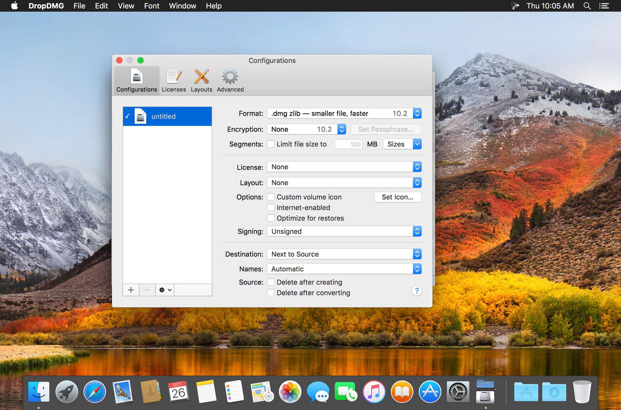 DropDMG Год выпуска: 2020 Версия: 3.6.5 Разработчик: C-Command Software Архитектура: ARM, x86 (64-bit) Язык интерфейса: английский Таблэтка: TNT Системные требования: macOS 10.9 и новее Описание: DropDMG - самый простой способ для создания собственного образа диска в среде Mac и работа с ним. Функциональная утилита для создания .dmg, .img, .smi, .sitx, .tar и .zip. Если вам требуется создать один из видов контейнеров, а Вы не желаете или, не знаете как осуществить это с помощью Disk Utility и других вспомогательных приложений, то воспользуйтесь этой простой программой. В DropDMG есть возможность создания установочного диска (Create OS X Install Disk) Mac OS X 10.9 Mavericks (жёсткий диск, USB накопитель, или карта памяти SD). Для создания контейнера необходимо просто перетащить упаковываемую папку или файл в окно приложения или на иконку DropDMG. Выбор формата создаваемого контейнера осуществляется в настройках приложения. Приложение поддерживает расширенные опция, такие как зашифрованные и сегментированные образы дисков, WYSIWYG редактор для создания макета дистрибутивного диска с фоном, пользовательскими иконками, текстовыми лицензионными соглашениями на нескольких языках и т.д., а поддержка AppleScript и Automator, позволит сэкономить время.