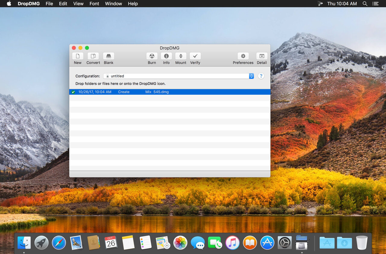 17 нояб. 2021 г. - Версия 3.6.3 - Updated the "Create macOS Install Disk" prompt and documentation for macOS 12 Monterey. - Updated the Format and Segments sections of the manual for macOS 12 Monterey. - Updated the crash reporter for macOS 12 Monterey. - The command-line tool no longer times out for very long operations. - Improved DropDMG's error handling when setting a custom volume icon and making the mounted disk image auto-open. - Improved DropDMG's error handling when reading license agreement information from a disk image. - Fixed a bug that could cause a crash when updating the Activity Window when multiple operations were in progress at the same time. - DropDMG now declares notch compatibility for the new MacBook Pros. If you enjoy using DropDMG, please take a moment to rate it or leave a review. We’d really appreciate it.