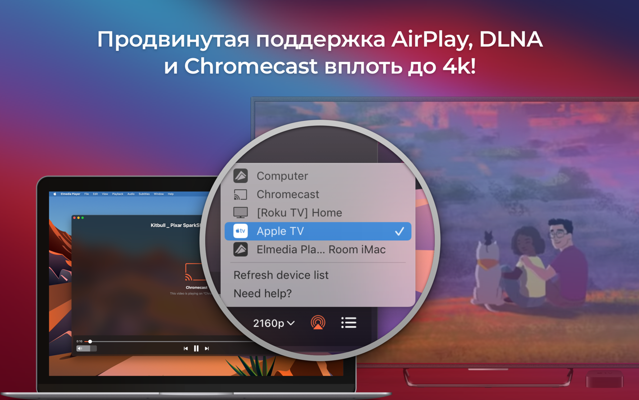 С помощью Elmedia Player, установленного на вашем Mac, вы сможете легко транслировать локальные видео- и аудиофайлы на телевизоры Samsung, LG, Sony, а также на многие другие смарт-телевизоры. Отличные функции потоковой передачи, предлагаемые Elmedia: