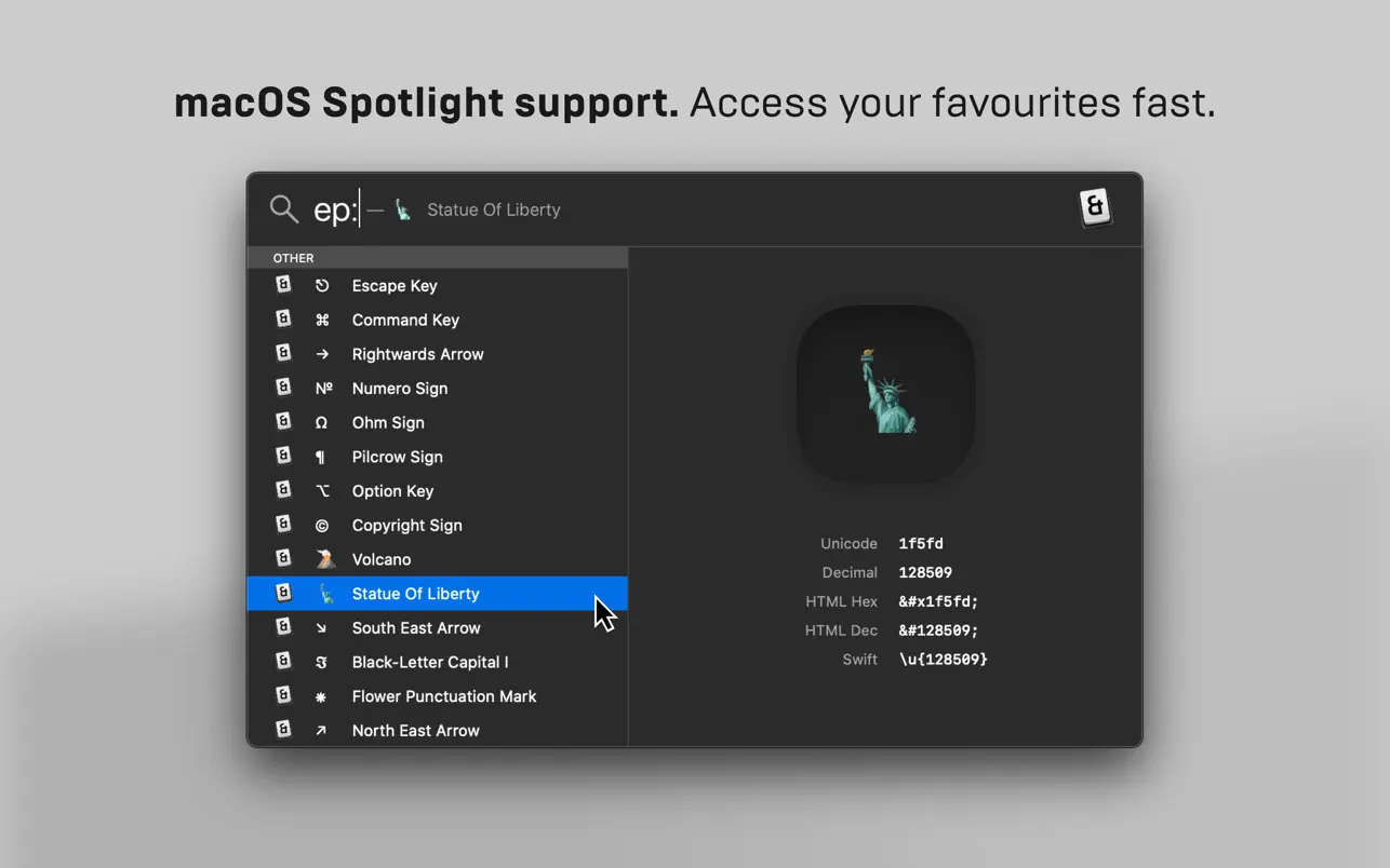 - Расширение Spotlight: Быстрый поиск любимых символов с помощью macOS Spotlight