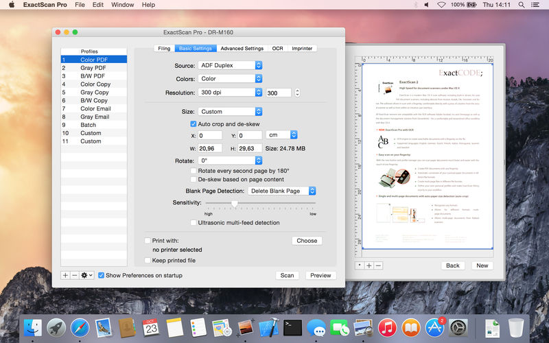 Описание: ExactScan Pro — это профессиональное решение для сканирования безбумажного офиса на Mac. Наведите порядок и сэкономьте время и деньги. ExactScan поставляется с более чем 400 драйверами для профессиональных сканеров документов от Avision, Canon DR-серии, Fujitsu fi-серии, Kodak, Oki, Panasonic, Visioneer и Xerox, которые не поставляются с драйвером для Mac. Кроме того, он позволяет использовать любой другой сканер с драйвером TWAIN или ImageCapture. Отсканируйте все свои документы для быстрого поиска и избавьтесь от пыльных бумажных архивов. Находите файлы PDF с возможностью поиска где угодно с помощью Spotlight.