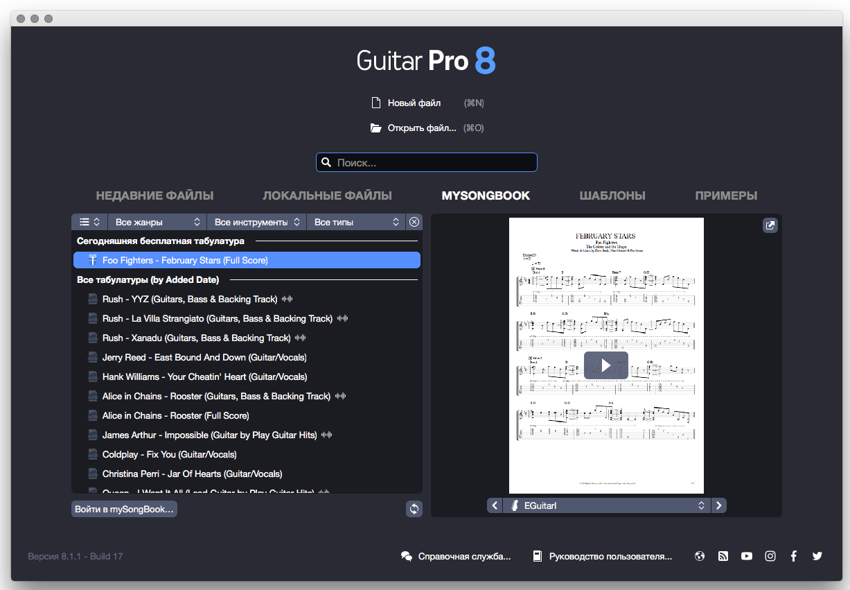 Описание: GUITAR PRO 8 — это идеальный набор инструментов для гитариста и ведущее программное обеспечение для чтения и редактирования табулатур. На протяжении 25 лет Guitar Pro помогает музыкантам по всему миру научиться играть на гитаре, сочинять песни, а также расшифровывать и редактировать песенники.