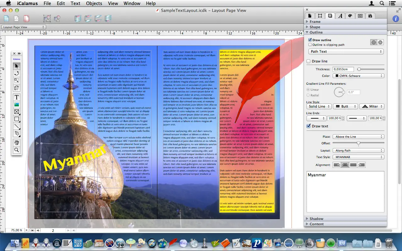 Описание: iCalamus предлагает простой подход к DTP и является отличным выбором для создания от простых плакатов до сложных журналов, научных работ и для книгоиздания. iCalamus - это многоязычное, ориентированное на фреймы решение для настольной издательской системы OS X. Работа с точными единицами измерения не составляет труда. iCalamus предлагает гибкие возможности маскирования с множеством предопределенных, динамически изменяемых форм рамок. Пользователи могут создавать виртуальные копии для нескольких элементов документа и изменять их впоследствии всего несколькими щелчками мыши. iCalamus может импортировать все форматы изображений и текстов, поддерживаемые OS X. Удобный захват текстового содержимого из больших PDF-документов для последующей обработки текста. Можно импортировать изображения с цифровых камер, сканеров или из библиотек iPhoto, а также целые веб-страницы. Вывод на печать поддерживает все принтеры. Скриншоты:-