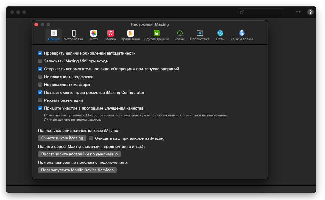 iMazing часто называют "швейцарским армейским ножом для управления iPhone", он предлагает широкий спектр возможностей: