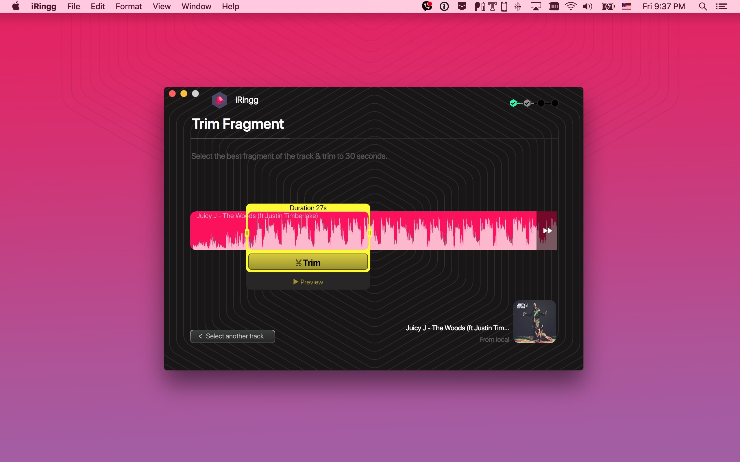 Описание: iRingg позволяет создавать персональные рингтоны практически из всего, что можно найти в Интернете. Легко обрезайте фрагменты звука из песен в библиотеке iTunes или мгновенно находите их на SoundCloud или YouTube. Добавьте звуковые эффекты (так называемые SndMoji™?) или запишите свой собственный голос и используйте фильтры для создания чрезвычайно индивидуальных рингтонов. Свежесозданные рингтоны можно передавать непосредственно на iPhone (проводное или беспроводное соединение), и они появятся в разделе рингтонов по умолчанию. Скриншоты:-