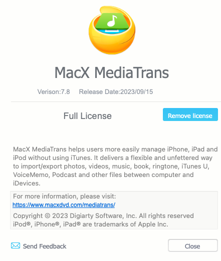 MacX MediaTrans Год выпуска: 2023 Версия: 7.8 Разработчик: Digiarty Software, Inc. Платформа: Intel Язык интерфейса: английский Таблэтка: Программа пролечена (не требует введения данных/вводим любые данные) Системные требования: