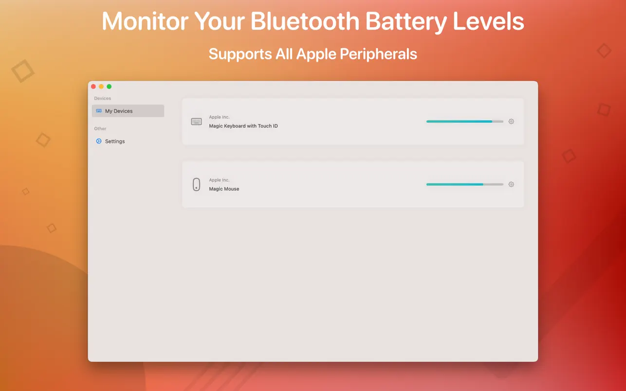 Описание: Приложение Magic Battery отображает в строке меню уровень заряда батареи поддерживаемых устройств ввода и наушников, подключенных по Bluetooth. Поддерживаются также внутренние аккумуляторы. Поддерживаются следующие устройства: Устройства ввода: