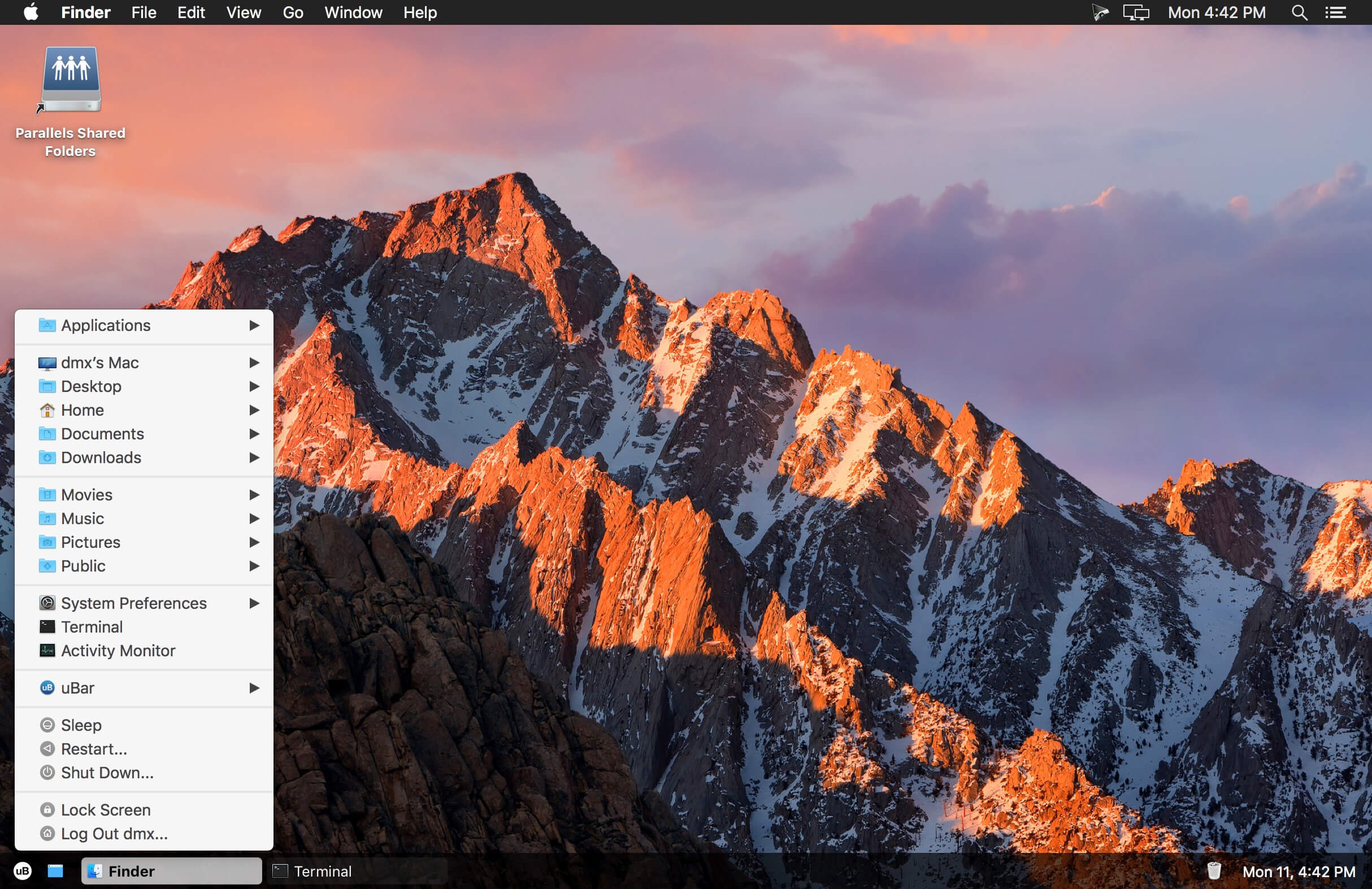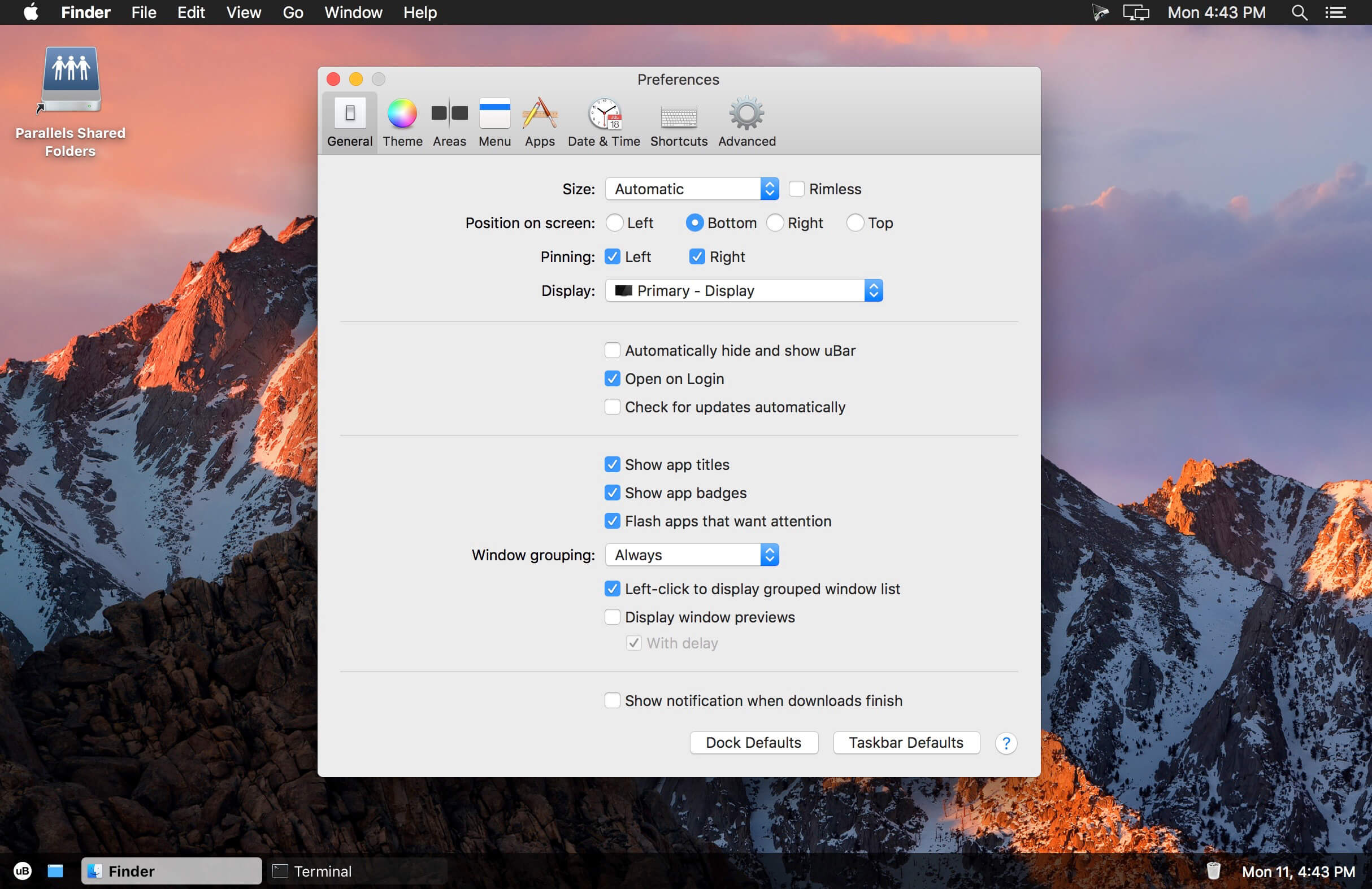 Описание: uBar — это полнофункциональная замена стандартному Доку в OS X. Внешний вид, работа приложения и его возможности сильно приближены к таковым из Windows. При первом запуске программы необходимо разрешить ей доступ к меню настроек «Конфиденциальность» в параметрах Защиты и безопасности. После этого нужно перезапустить само приложение. Теперь обратите внимание на самый низ рабочей области, где по умолчанию расположен Док. Вместе с ним будет видна еще одна панель, сильно напоминающая таковую из какой-нибудь Windows 7.