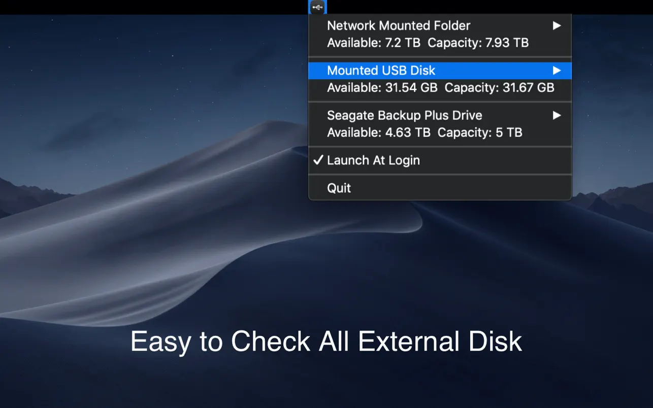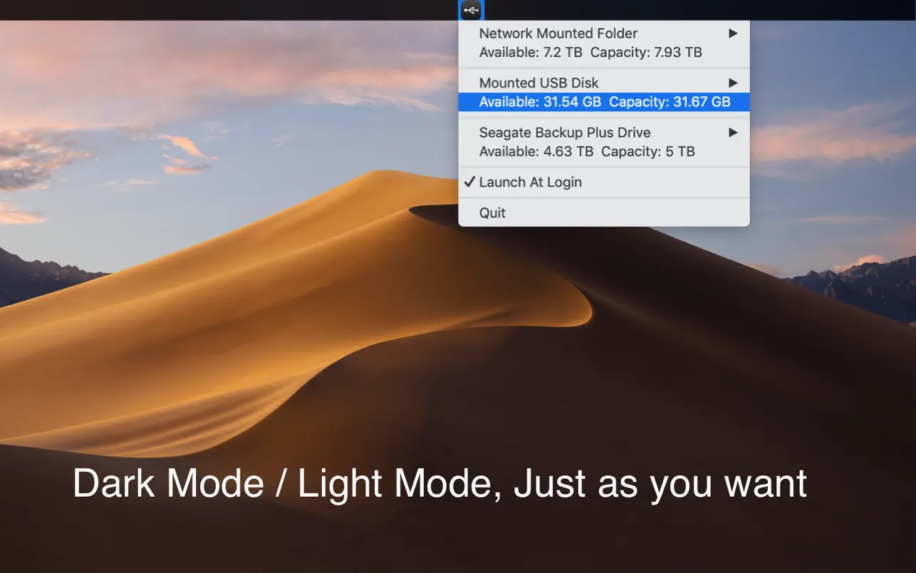 Описание: Мониторинг USB и сетевого хранилища. X-Disk помогает пользователю быстро проверить внешнее хранилище. Подключите USB-накопитель или смонтируйте сетевую папку, затем щелкните значок меню в строке состояния системы. Ключевые особенности: