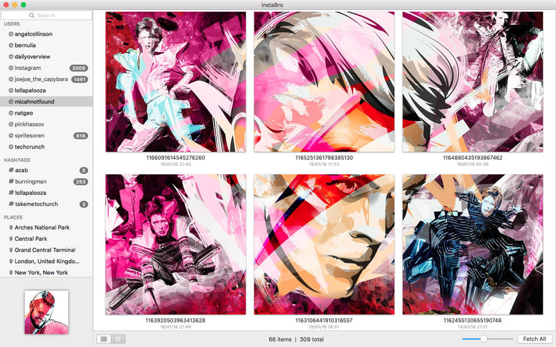 Описание: InstaBro это простой инструмент для Mac, с которым вы можете загружать все фотографии и видео с любого аккаунта Instagram, хэштегом или локально.