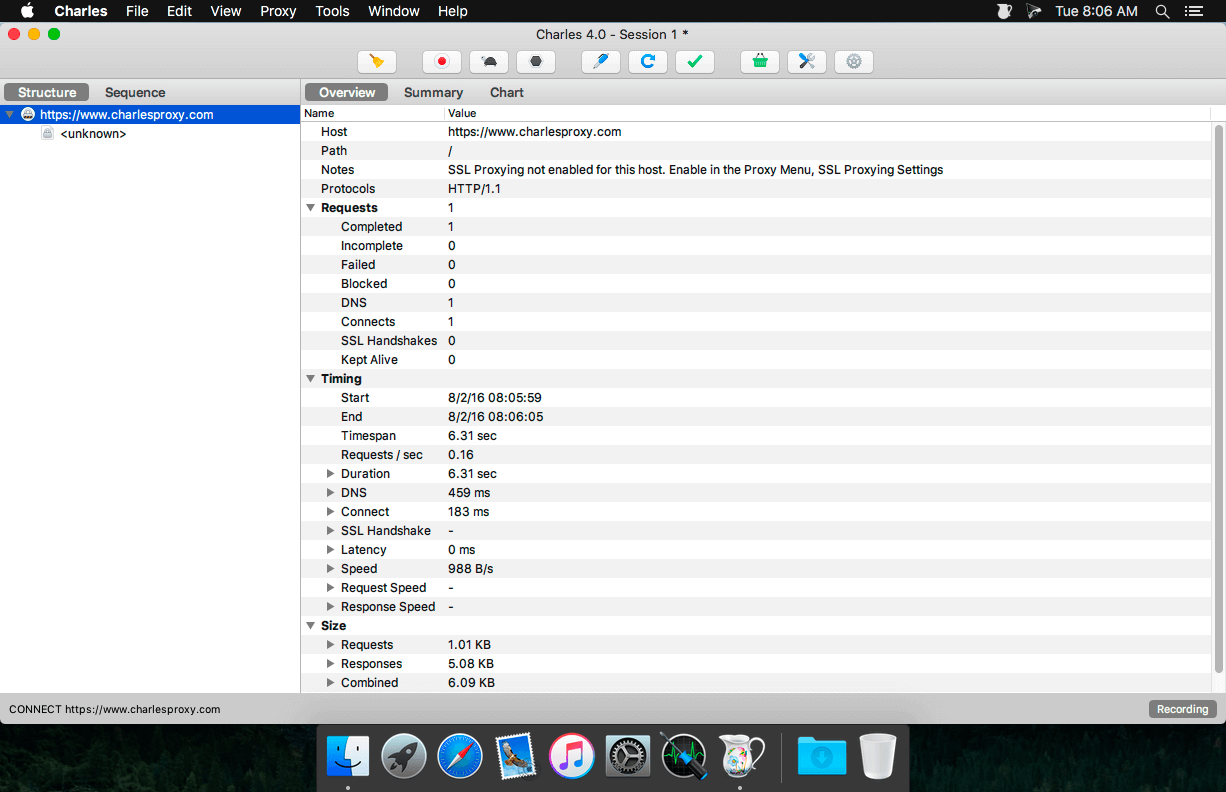 Множество работников IT-отделов используют программу, ведь при диалоге клиента с сервером вы не можете через свой браузер проверить, какая информация была получена, какая передана, а это иногда очень необходимо. Для этого и существует Charles, который выводит всю необходимую вам информацию. Благодаря возможностям этой программы, вы можете легко и быстро отследить неполадки и ошибки, чтобы в будущем без долгих поисков их выявлять и исправлять. Приложение имеет богатую функциональность, но основным предназначением является отображение данных, полученных и отправленных при работе клиента с сервером. Одним из преимуществ Charles является то, что все переданные и все полученные данные записываются и отображаются на вашем компьютере в понятном и упорядоченном виде. Кроме того, еще одной из основных функций Charles можно считать возможность отладки кода. Причем данный веб-прокси может похвастать очень качественной и быстрой отладкой, что, безусловно, делает его популярным не только среди рядовых пользователей, но и среди множества опытных программистов и системных администраторов. Особенности: