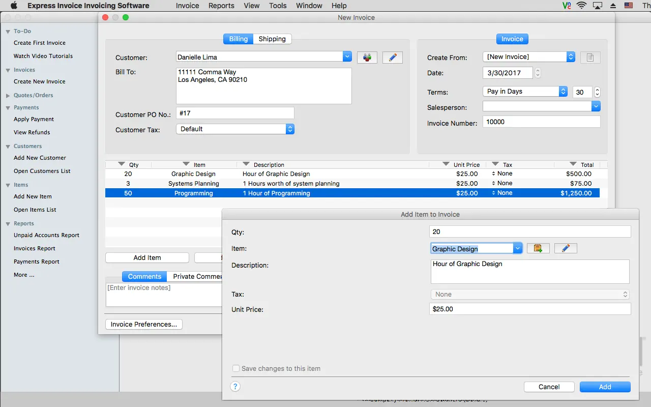 Описание: Простое программное обеспечение для выставления счетов. Для управления и отслеживания ваших счетов на Mac. Express Invoice позволяет создавать счета-фактуры, которые можно распечатать, отправить по электронной почте или факсу напрямую клиентам для более быстрой оплаты. Функция отчетности позволяет отслеживать платежи, просроченные счета, работу отдела продаж и многое другое. Оптимизируйте процесс выставления счетов и поддержите несколько налоговых ставок для нескольких предприятий - все с безопасным мобильным доступом к устройствам iPhone. Ключевые особенности: Особенности выставления счетов
