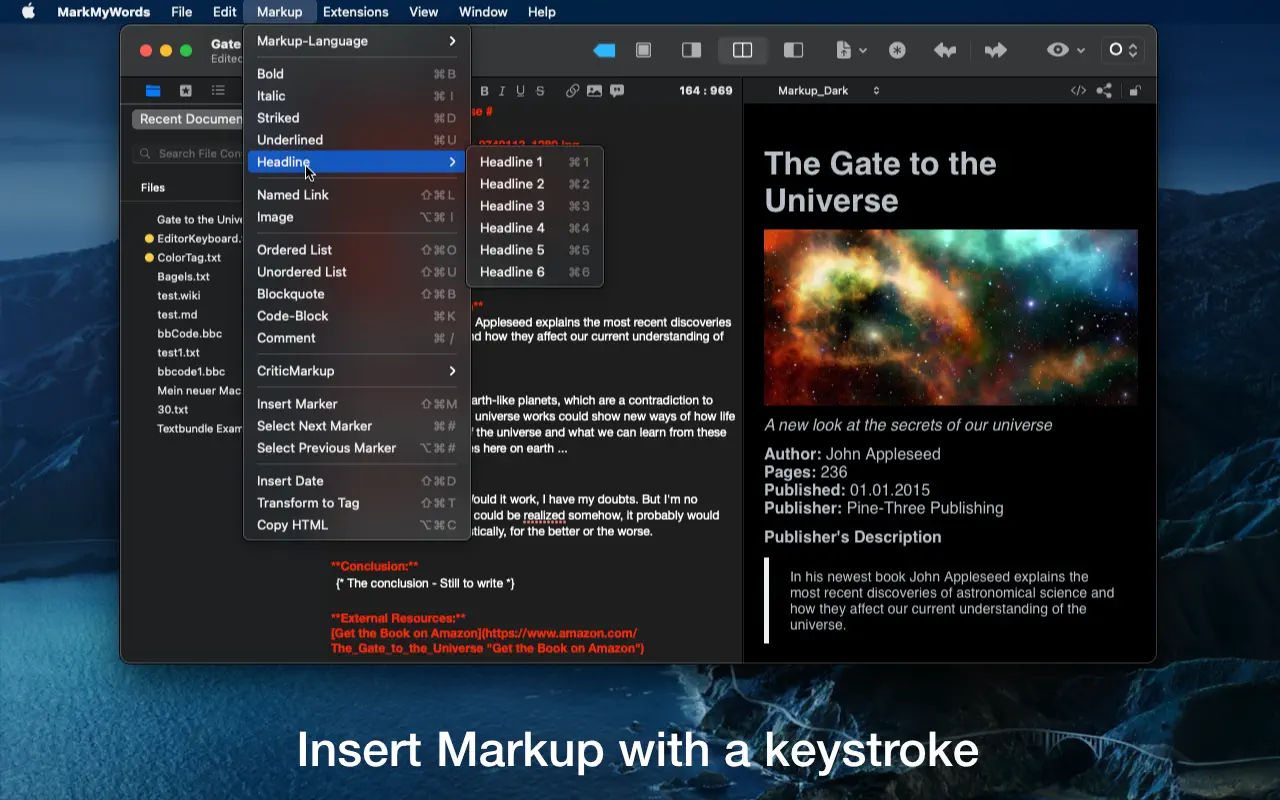 Описание: MarkMyWords предлагает простые функции форматирования и структурирования содержания статей, которые будут опубликованы в «Интернете» и остаются независимыми от платформы при использовании текстовых документов. Возможности: