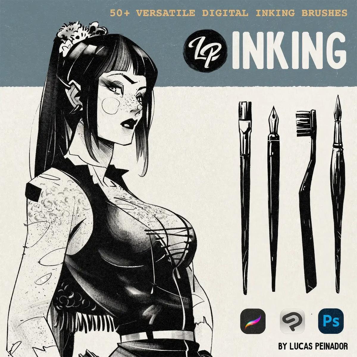 Ваш лучший спутник в цифровом искусстве! Поздоровайтесь с новым творческим помощником - кистями LP Inking Brushes, полным набором из 50+ тщательно проработанных инструментов, которые сделают ваш творческий путь еще более увлекательным. Дополнительная информация: https://shop.lucaspeinador.com/products/lp-inking-brushes