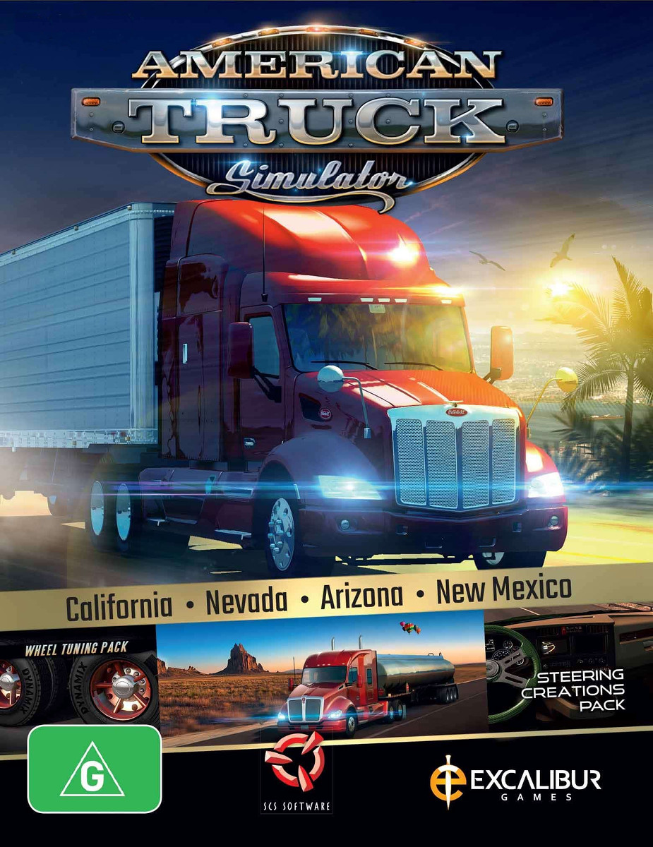Описание: Испытайте легендарные американские грузовики и доставьте разнообразные грузы по солнечной Калифорнии, песчаной Неваде и штату Гранд-Каньон в Аризоне. American Truck Simulator отправит вас в путешествие по захватывающим дух пейзажам и широко известным достопримечательностям Штатов. Игровая механика основана на очень успешной модели из Euro Truck Simulator 2 и дополнена новыми функциями, создающими самый захватывающий игровой процесс от SCS Software. American Truck Simulator ставит вас на место наемного водителя, выходящего на местный грузовой рынок, заставляя вас пройти путь до владельца-оператора и создать одну из крупнейших транспортных компаний в Соединенных Штатах. Функции