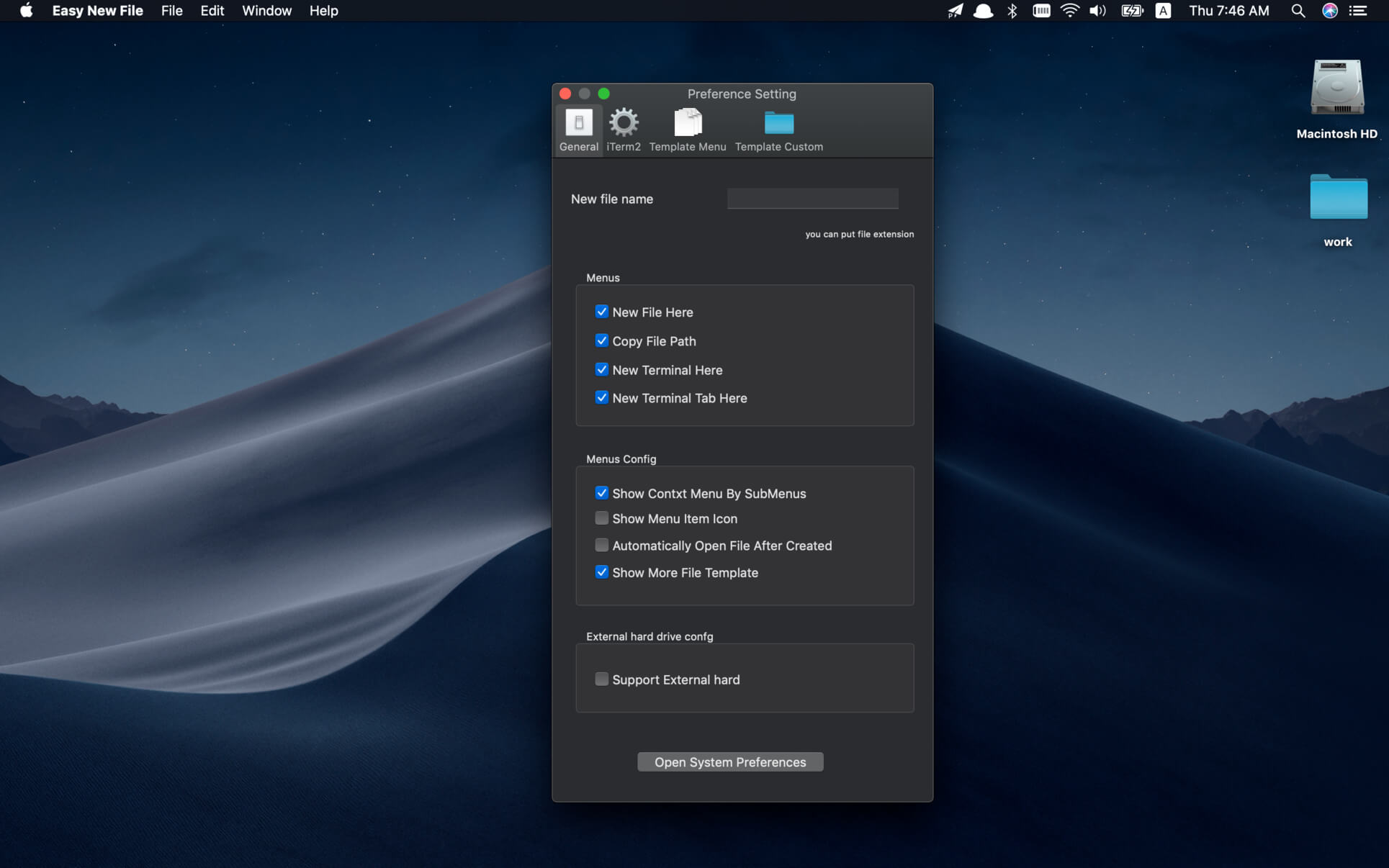 A: Перейдите в «Системные настройки» -> «Расширения» -> «Включить Easy New File». Скриншоты: