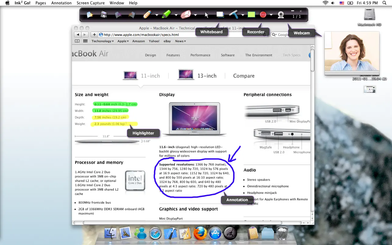 Описание: Ink2Go - интересное приложение, которое позволяет создавать аннотации и выделять текст различными способами на любом приложении, работающем в данный момент времени: Web-страницы, окна других приложений, документы и даже на видео.