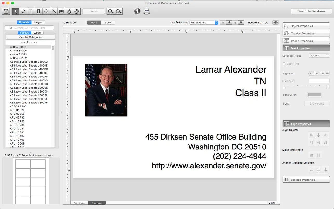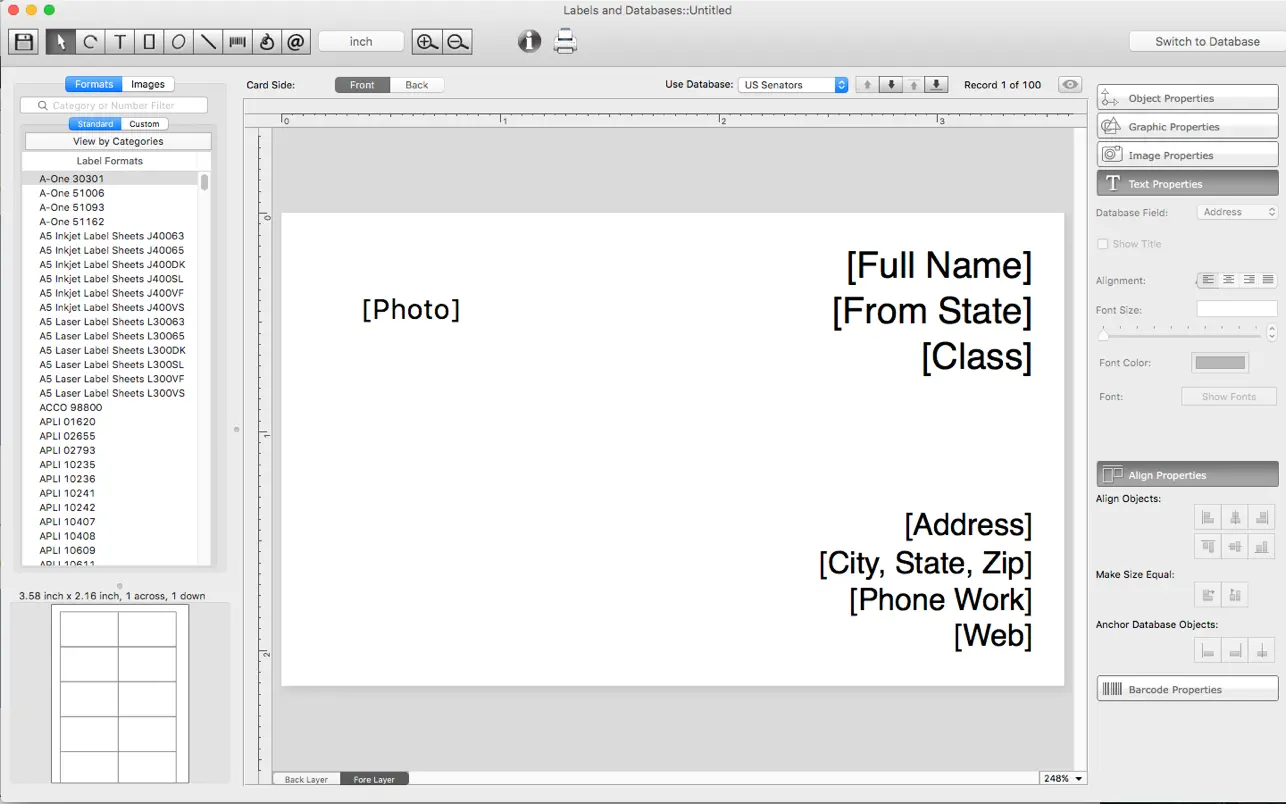 Описание: The Labels and Databases — это приложение для создания и дизайна этикеток со сложной поддержкой баз данных. Он помогает вам создавать этикетки, конверты и открытки с использованием различных встроенных форматов этикеток и заполнять их информацией, содержащейся в пользовательских базах данных, то есть создавать и печатать этикетки с помощью слияния.