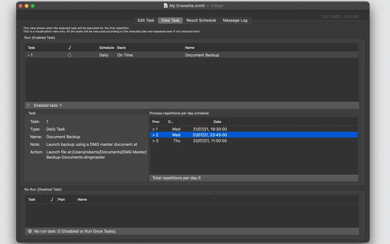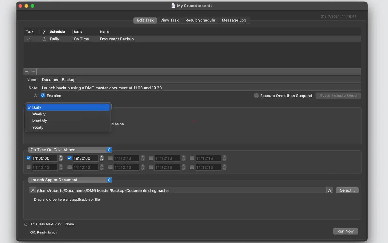 Утилиту можно использовать на необслуживаемых серверах Mac или на обычных рабочих станциях Mac для задач, выполняемых в ночное время, или для повторяющихся задач, которые должны выполняться на регулярной основе. Cronette предоставляет различные типы задач запуска, и любая задача может быть указана для запуска разного типа выполнения.