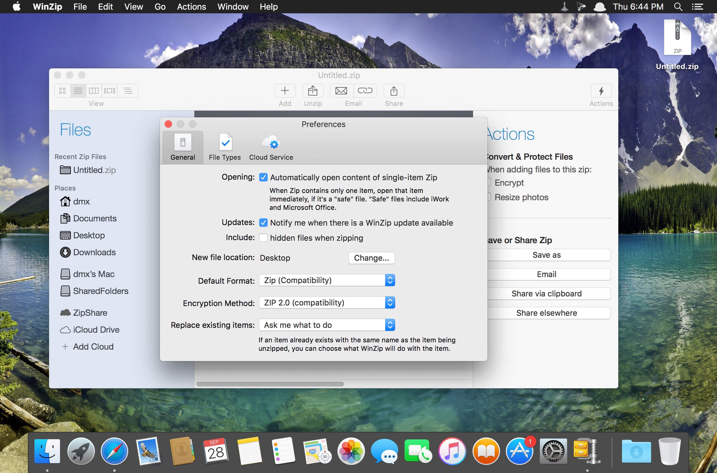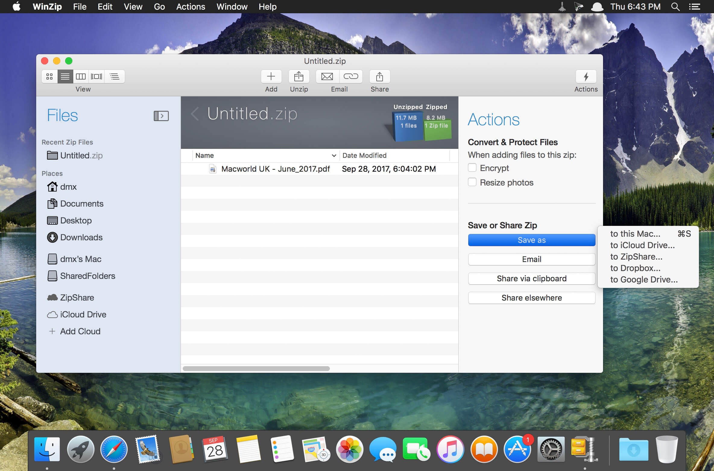 - Подключайтесь к iCloud Drive, Dropbox, Google Drive и ZipShare прямо из WinZip.