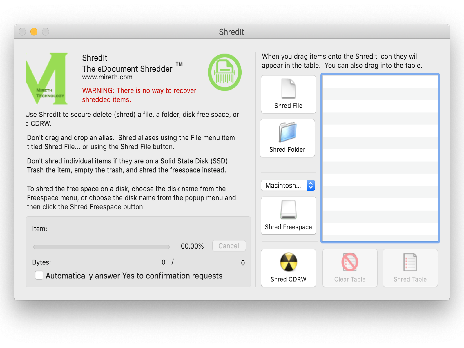 С ShredIt X Вы обретёте спокойствие, что навсегда удалили нежелательную к восстановлению информацию. Примечание: Это устаревший софт. Может не работать на последней версии macOS. Скриншоты: