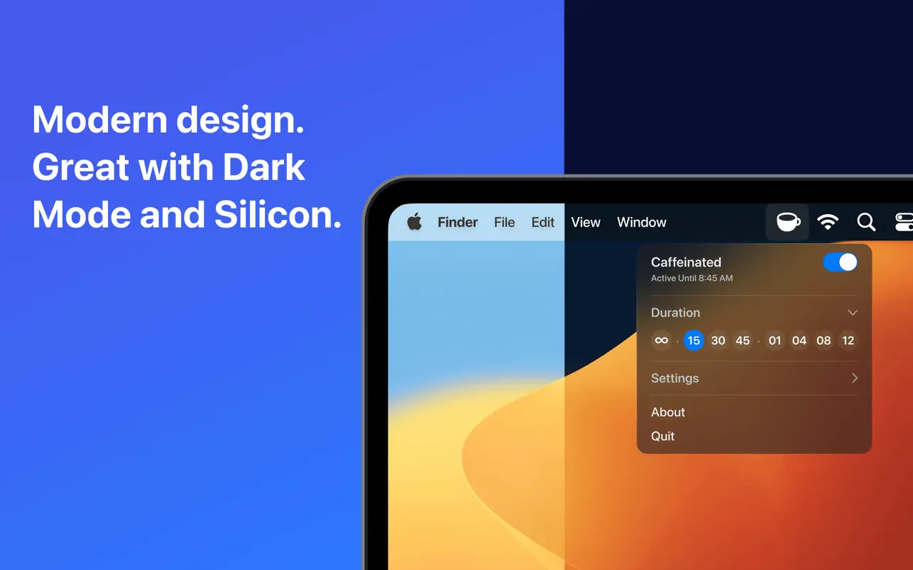 Описание: Ваш экран темнеет, когда вы этого не хотите? Тогда Caffeinated - идеальный инструмент для вас. Программа Caffeinated была разработана на основе полезного инструмента Caffeine. Caffeinated возвращает классические функции вашему Mac. Caffeinated не только очень удобен, но и прост в использовании. Достаточно щелкнуть на значке в строке меню, чтобы предотвратить переход экрана в спящий режим. В меню вы найдете все важные опции и настройки таймера. Особенности: - Активация одним щелчком мыши (по выбору - левый или правый щелчок)