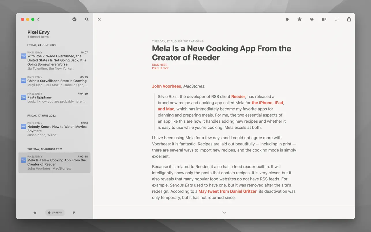 • Импорт и экспорт OPML • Глобальные фильтры позволяют фильтровать все подписки и связанные с ними новости о непрочитанных и фаворитах.