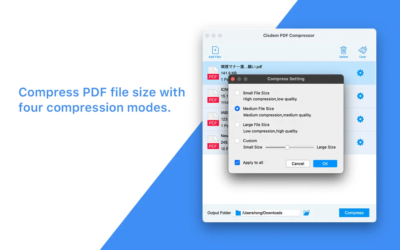 Описание: Cisdem PDF Compressor является программным обеспечением для сжатия PDF файлов. Программа позволяет уменьшить размер всех ваших PDF файлов до 90%, сохраняя при этом их исходное качество неизменным. С Cisdem PDFCompressor, вы можете сэкономить место на Вашем компьютере, а также обмениваться PDF-файлами с друзьями/коллегами значительно быстрее. [ Страница в mac app store ] Скриншоты: