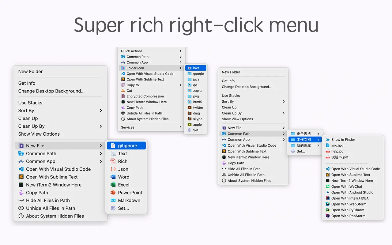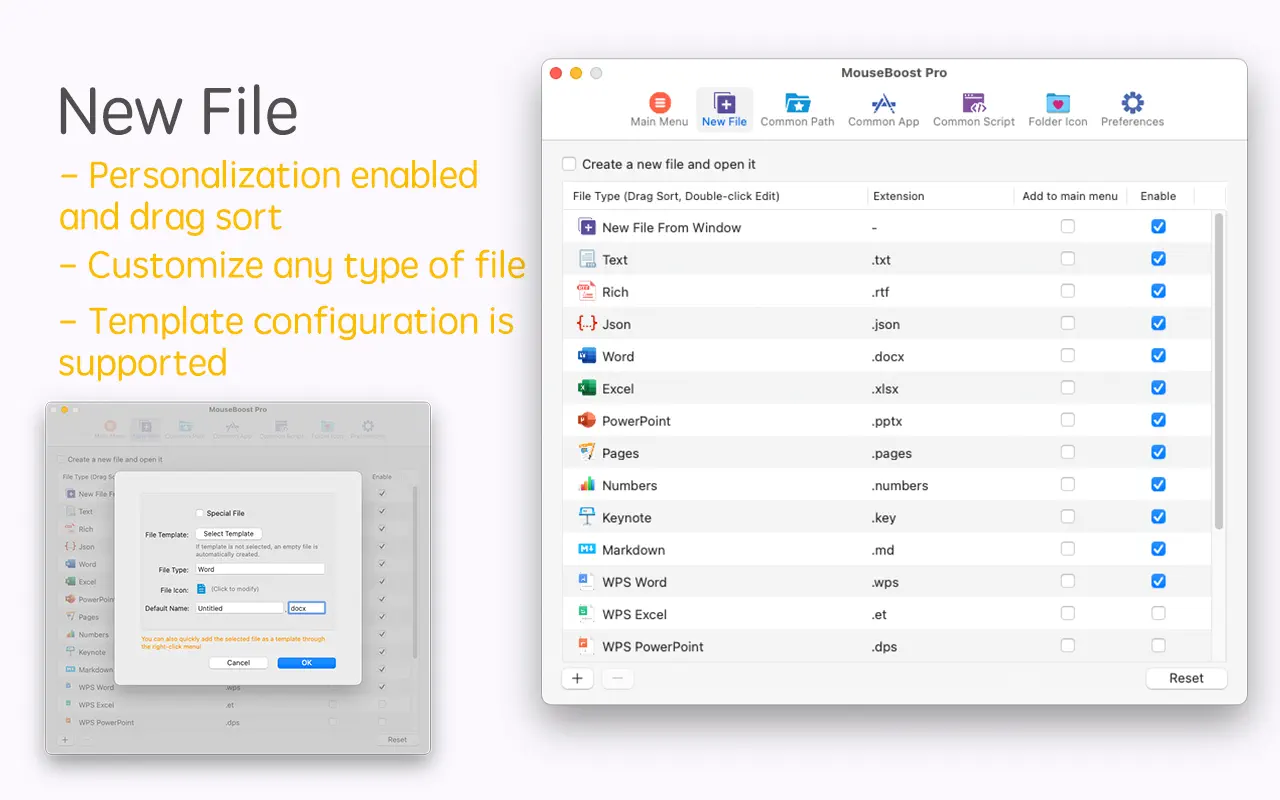 • Быстро создавайте все виды часто используемых файлов и поддерживает индивидуальное создание файлов различных типов по вашему желанию.