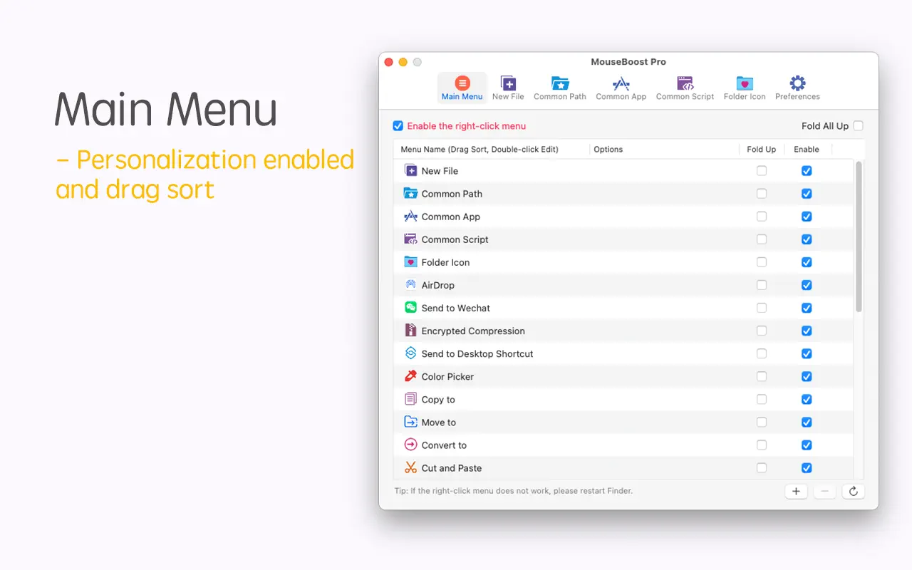 Описание: MouseBoost Pro объединяет более 30 видов небольших инструментов, а способ работы очень прост: нажимая правую кнопку мыши, вы можете активировать все виды функций, которые хотите, что значительно повышает эффективность вашей работы. Вы можете создать любой тип файла, открыть любое приложение, с автоматической сортировкой и полной настройкой! Основные характеристики: • Все меню поддерживают пользовательскую сортировку.
