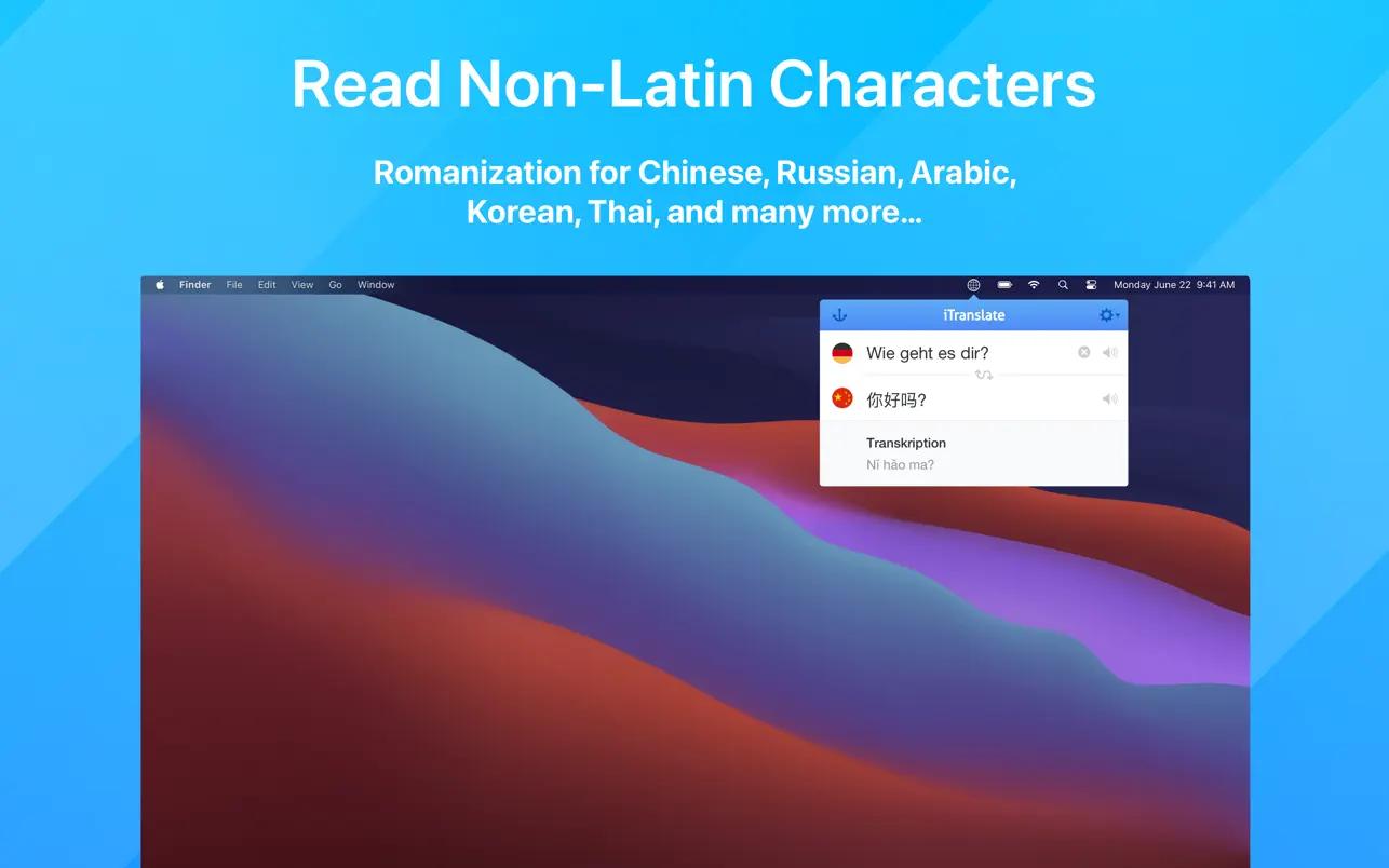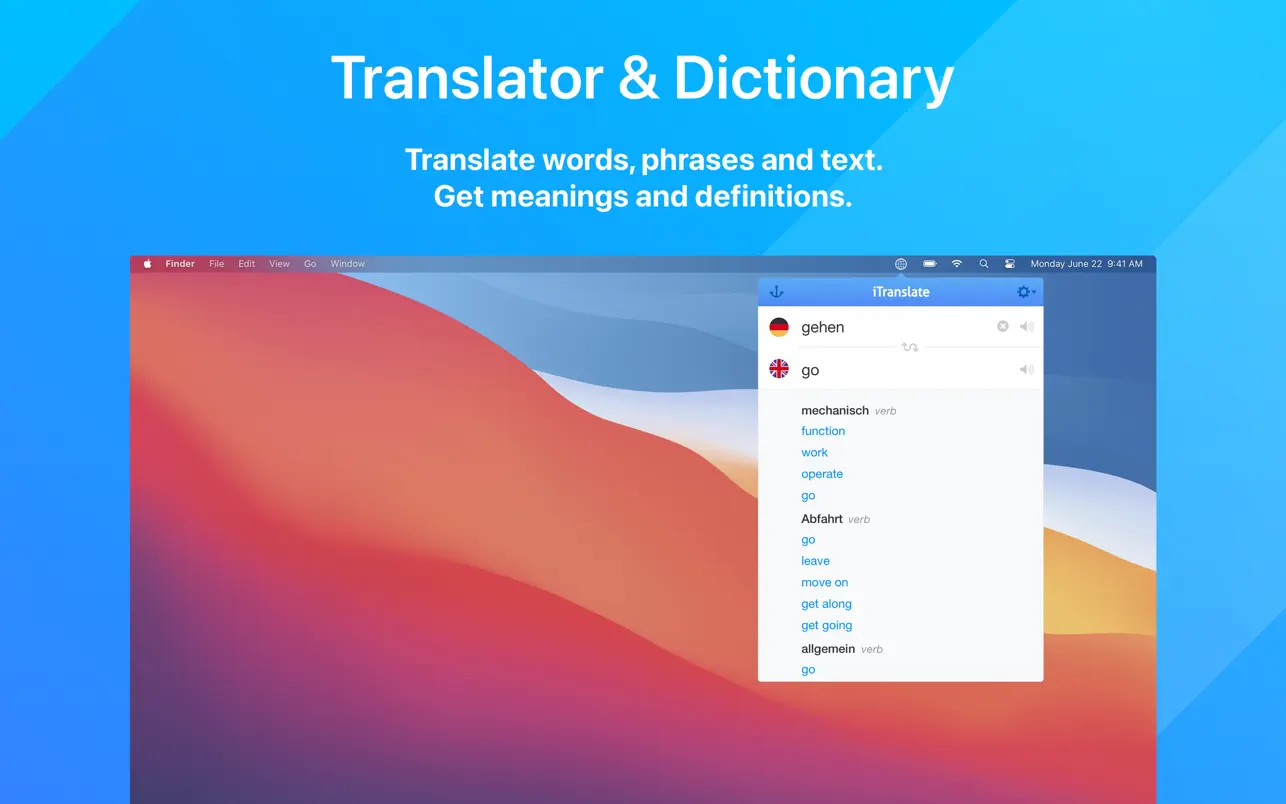 Описание: iTranslate, наиболее популярный инструмент переводчиков на App Store, теперь и на вашем Mac.