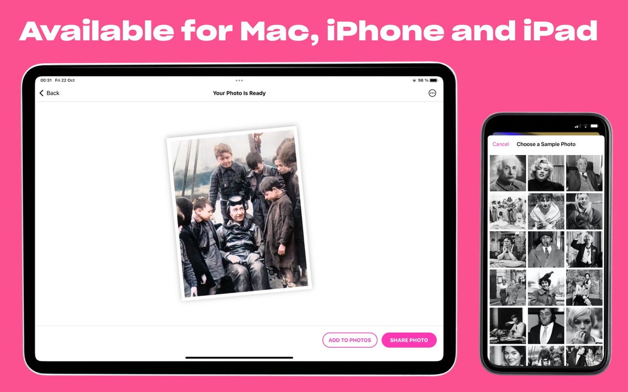 Таблэтка: Программа пролечена (не требует введения данных/вводим любые данные) Описание: PhotosRevive автоматически раскрашивает ваши старые черно-белые фотографии. Приложение использует революционный искусственный интеллект, который добавит цвета ультрареалистичным образом. Приложение очень простое в использовании. Отсканируйте или импортируйте свою фотографию и все. Приложение раскрасит его без каких-либо усилий с вашей стороны. Мы знаем, что цвета, выбранные движком, могут отличаться от ваших воспоминаний. Вот почему приложение позволяет добавлять обозначения цветов. Так что вы можете помочь искусственному интеллекту и изменить рендеринг по своему усмотрению. PhotosRevive — первое приложение, которое идеально подстроит рендеринг под ваши воспоминания. Особенности: